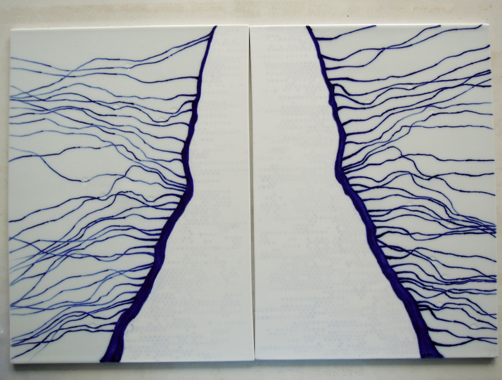 Malba kobaltem pod glazuru. Porcelánová deska. 2016
