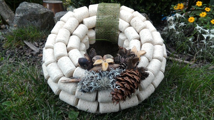 Korpus sláma, lepení korky, šišky. Nástěnné dekorace pro milovníky vína.