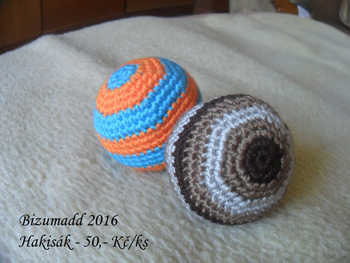 Háčkovaný hakisák plněný fazolemy prům 6-7cm. pro malé sportovce