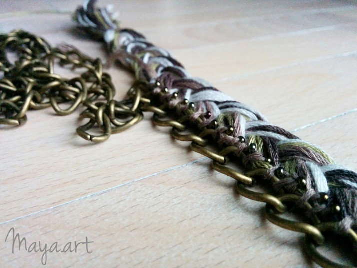 Výroba originálního náhrdelníku z bavlněných, kovového řetízku a rokajlu...