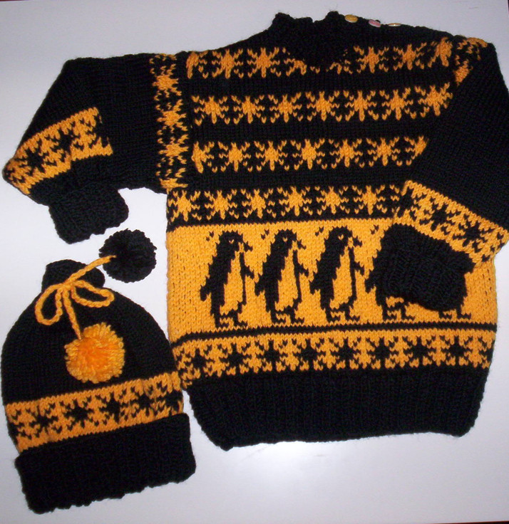 Ručně pletený svetřík a čepička v černo-žlutém provedení, z velmi kvalitního materiálu - 51%merino vlna, 34%akryl, 15%polyamid. Hodně teplý, vyrobený pro vnučku Karolínku