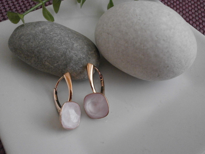 Stříbrné náušnice v úpravě růžové zlato- čtvereček v barvě Powder Pink.