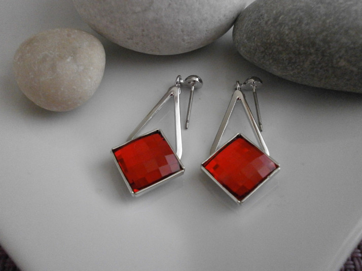 náušnice ZUZI Chess v barvě červené Light Siam. Puzety v provedení Rhodium