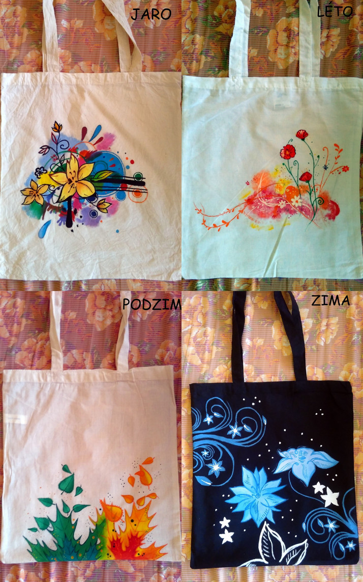 Bavlněné tašky, které jsem kreslila na zakázku.