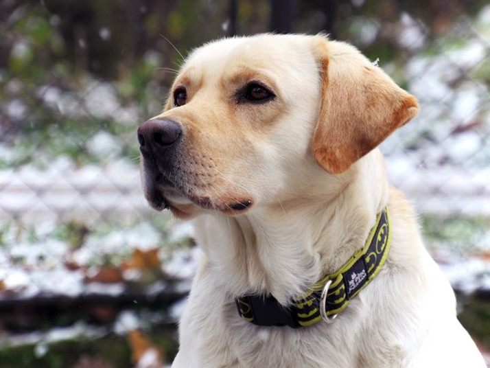 Marley v obojku s motivem Batmana. Děkujeme za foto :-).
