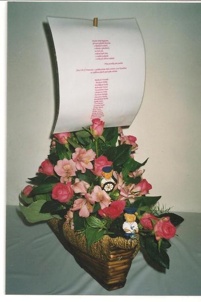 posádka jako třída se loučí s kapitánem lodi,třídní učitelkou,která loď opouští