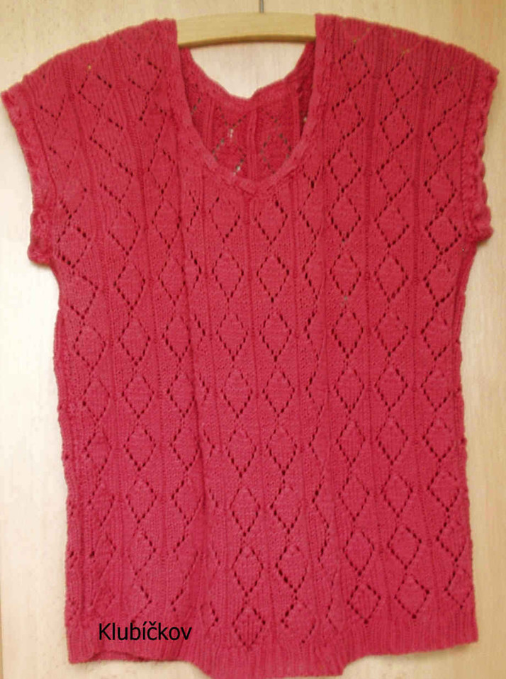Letní bavlněná halenka pletená dírkovým vzorem - taky už neexistuje... vznikla někdy v 90. letech