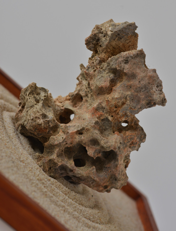 Mini zahrádka o rozměrech 35x25 cm. Materiál smrkové dřevo, písek, kamen.