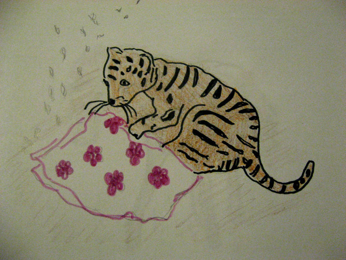 Tygřík trhá polštář, z knihy Tygřík Vaska.
