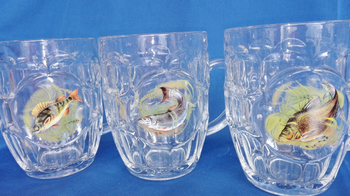 Půllitr s motivem ryb.