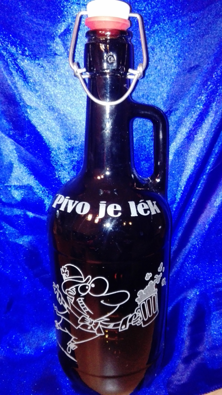 Džbánek na pivo s pískovaným motivem "pivo je lék"