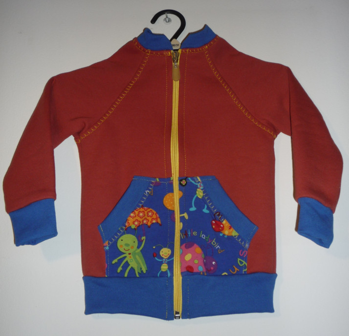 ušita z počesaného bavlněného výplňku, spodní okraj mikiny a rukávy jsou tvořeny pružným lemem. Kapsaje z bavlněné tričkoviny, dostupné různé velikosti
