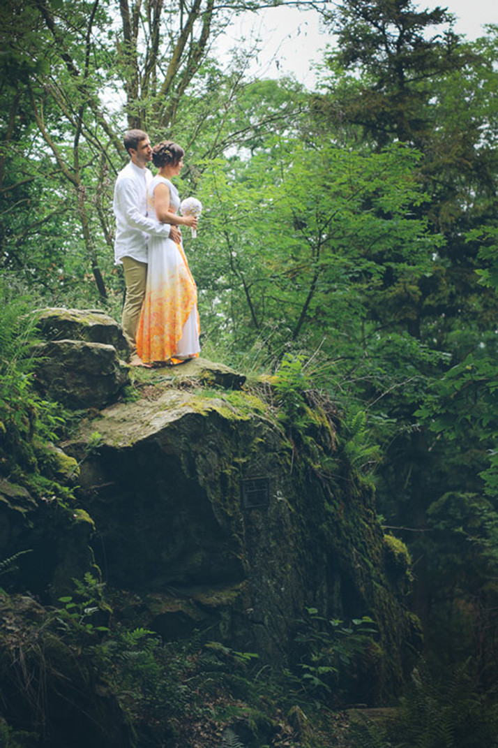 Tyto šaty byly navrženy přímo pro Kateřinu. Společně jsme vymyslely a posléze „dolaďovaly“ střih, vzor i barvy. Vznikly originální svatební šaty, které nevěstu krásně rozzářily.