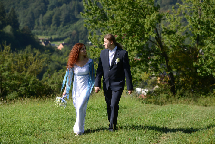 Jana si vybrala model „Svatební šaty pro rusalku“ v původní podobě. Se svými hustými rozpuštěnými kudrnatými vlasy zdobenými pouze jemným věnečkem, vypadala opravdu jako jedna z těch nejkrásnějších víl…