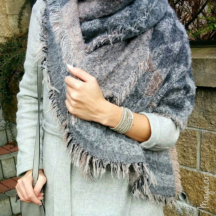 Wrap náramek z bílé kůže a šedých korálků tvoří pět otoček kolem ruky.