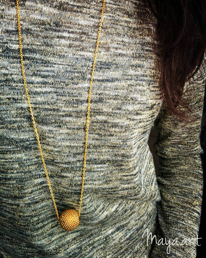 Náhrdelník je vyroben z ručně obsivane kuličky navleknuté na pozlacené řetízku.