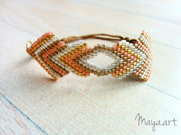 Náramek je vyroben technickou šití korálků stehem brick stitch z rokajlu TOHO.