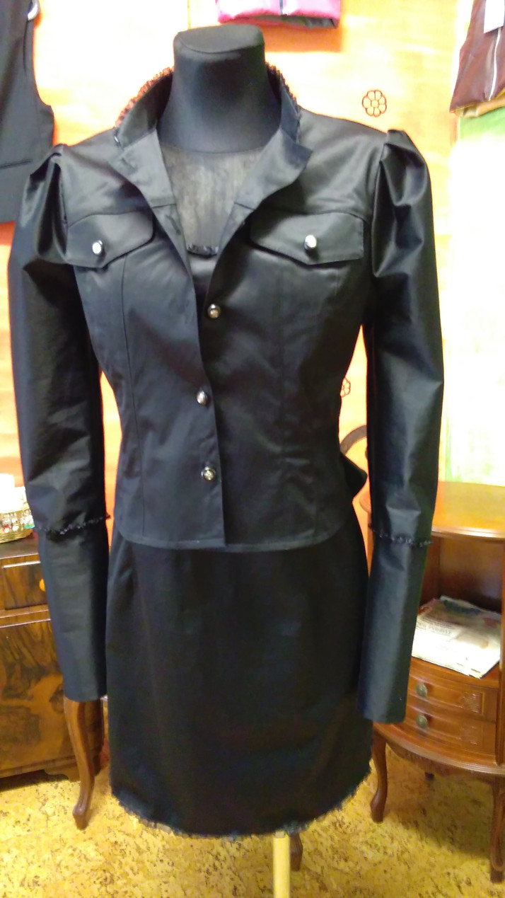 Kabátek gothic styl, velikost 40 - 42, použitý materiál bavlna s elastanem, cena 1980 Kč.