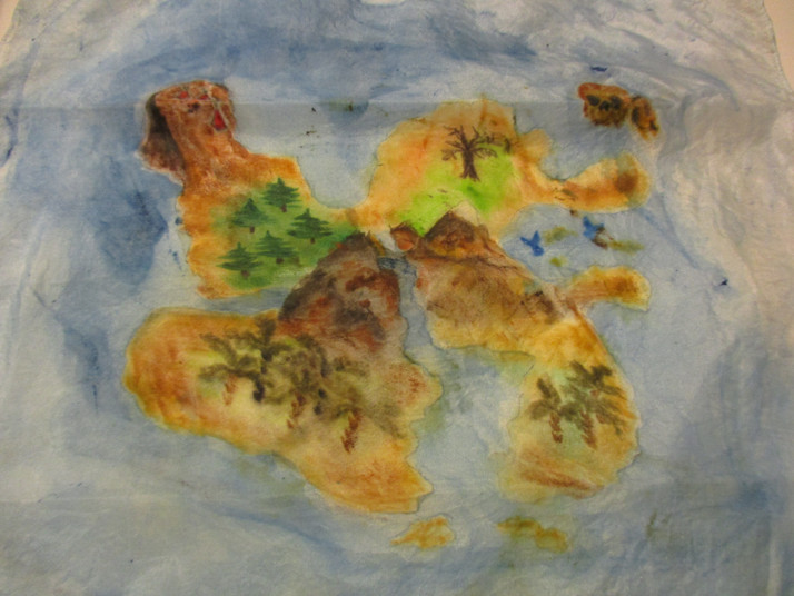 Konečná mapa na hedvábném ubrousku - chtělo by to napínací rám, chtělo by to taky si to několikrát ještě vlhké nepřiplácnout na sebe, ale jinak mi to tak děsný nepřijde.