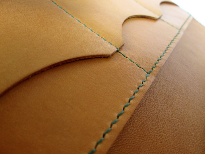 Detail ručního šití na jednom z našich výrobků. Jedná se o způsob šití, který na šicím stroji nelze vytvořit.