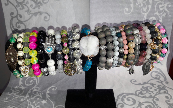 Náramky jsou ručně vyráběné, v různých velikostech a dle přání klienta vyrobíme který kolik náramek s různými kombinacemi.