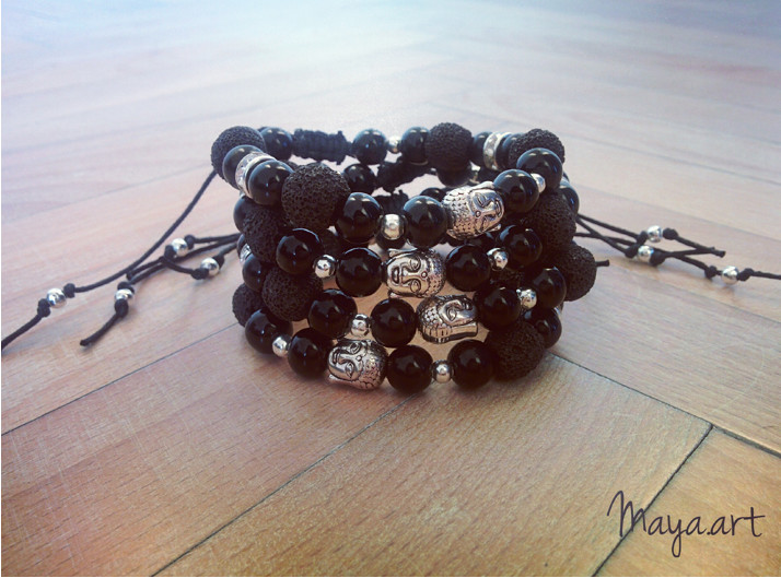 Náramky vyrobené z černých skleněných a lávových korálků.