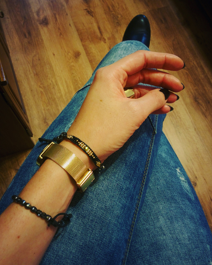 Náramky vyrobené z broušených korálků a rokajlu vyrobené navlekaním a tkáním.