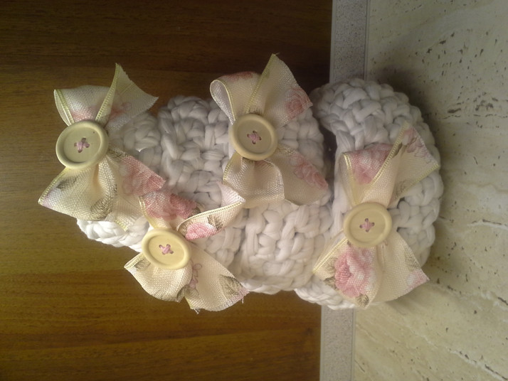 Košíčky na něžnosti.Bílé s květinovou mašlí a dřevěné knoflíky.