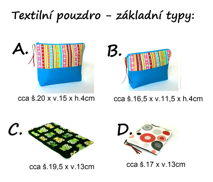 - základní střihy textilních pouzdrech z mé standartní nabídky