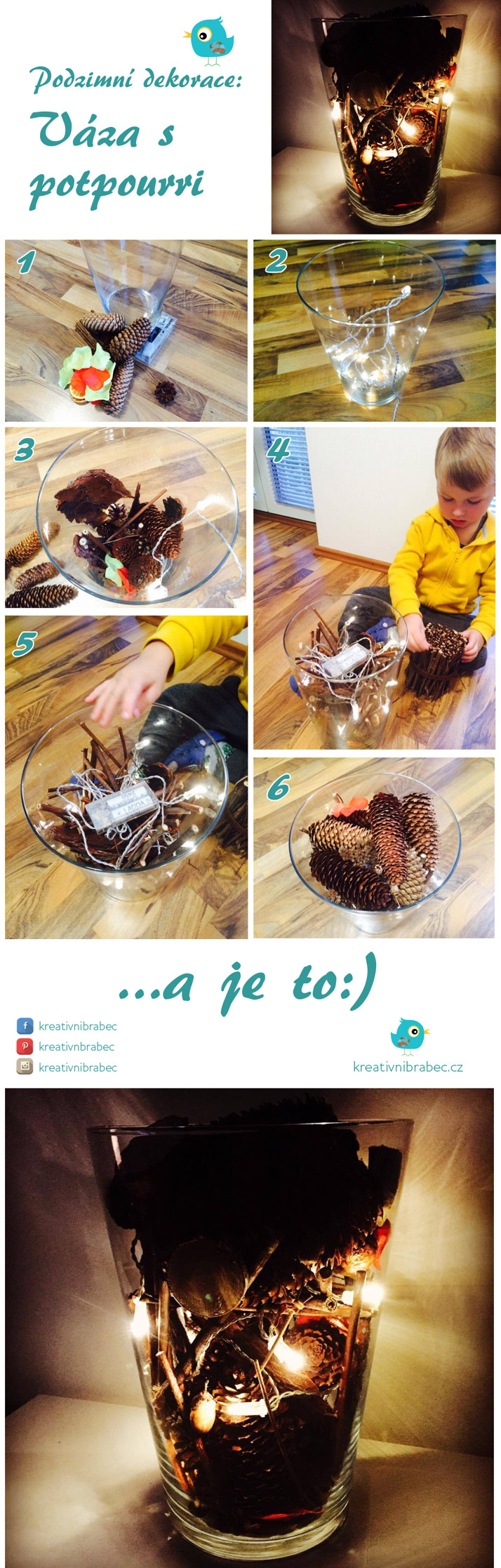 Vytvořte si jedinečnou dekoraci domova, která nejen hezky vypadá, ale i krásně voní z vlastních surovin třeba z procházky. Pokud si chcete vyrobit vlastní domácí potpourri, podívejte se i na náš návod "Domácí potpourri":)