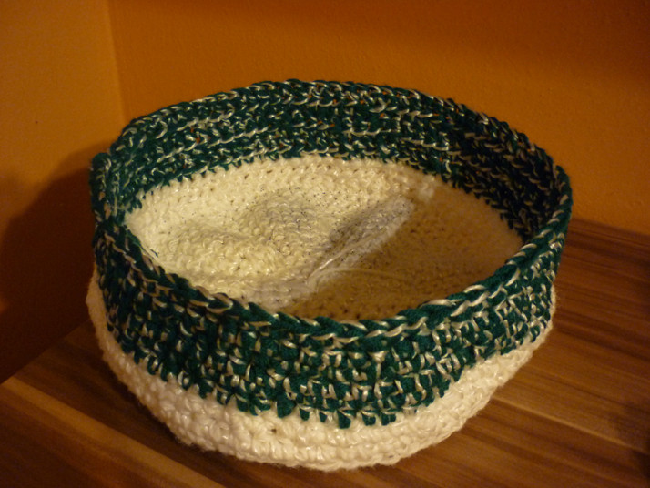 Koš ze 100% vlny, provázkem zpěvněný. Obvod 101 cm