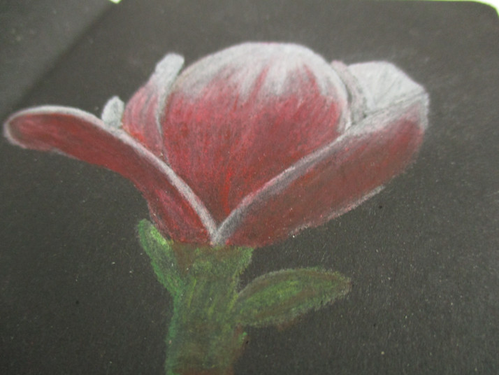 Magnolie na černém papíře, pastelky Prismacolor, blender Derwent - dle zásilkového katalogu ze zahradnictví :)
