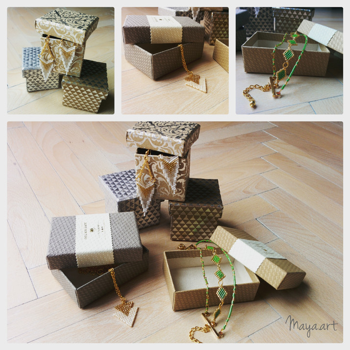 Šité šperky z rokajlu TOHO vyrobené technikami šití korálků peyote a brick stitch.