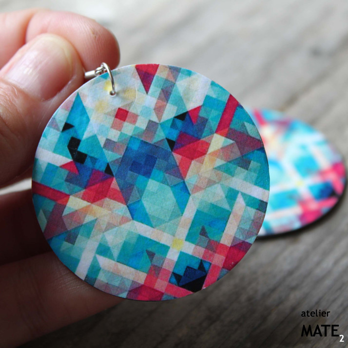 Náušnice jsou z perleťového kola o průměru 5cm. Kolo je upraveno technikou decoupage - OBOUSTRANNÁ DECOUPAGE. Perleť je opatřena lakem, který zajistí, že bude naušnice odolná proti poškrábání, dešti.... Použitý kov je stříbrné barvy. Háček je kovový bez obsahu niklu a olova. Celková délka i s háčkem je 6cm. Baleno v originální recy-cigaretové krabičce.