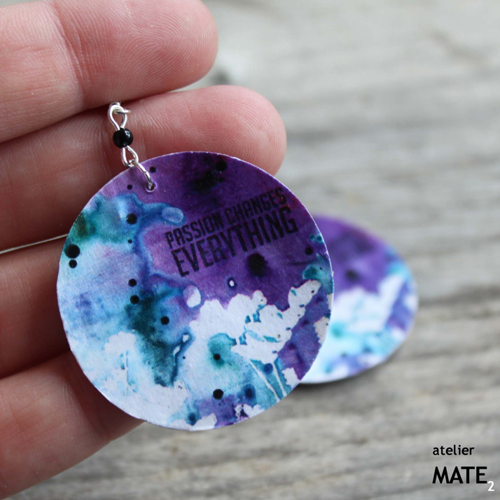 Náušnice jsou z perleťového kola o průměru 4cm. Kolo je upraveno technikou decoupage - OBOUSTRANNÁ DECOUPAGE. Perleť je opatřena lakem, který zajistí, že bude naušnice odolná proti poškrábání, dešti.... Použitý kov je stříbrné barvy. Háček je kovový bez obsahu niklu a olova. Celková délka i s háčkem je 5,5cm. Baleno v originální recy-cigaretové krabičce.