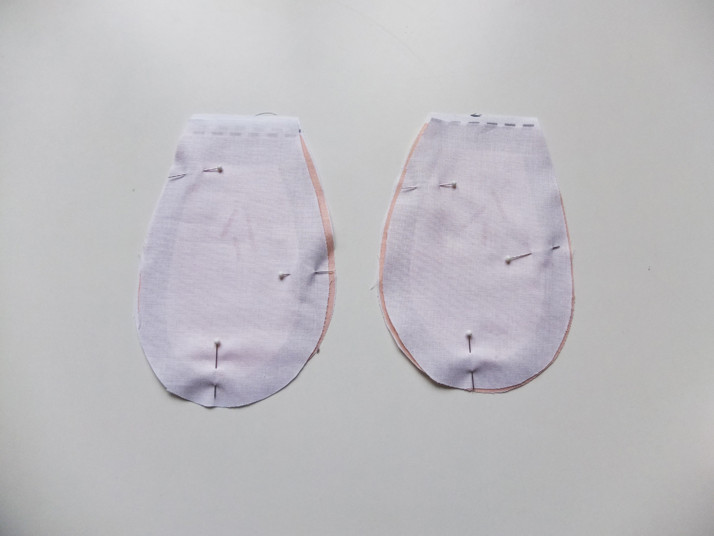 Sešpendlíme uši, vše musíte mít lícovou stranou dovnitř.
