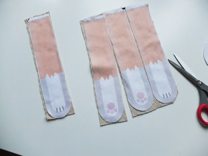 Podle částí natištěných nohou ustřihneme vybranou látku.