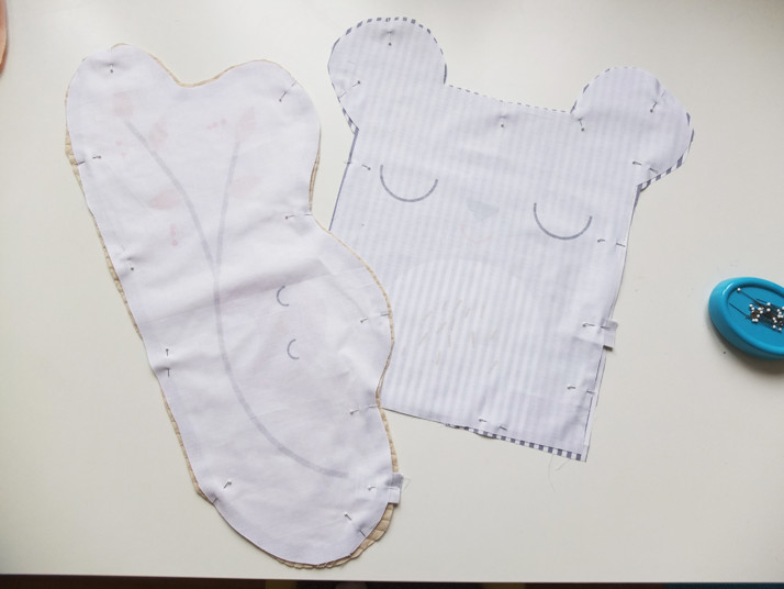 Vše sešpendlíme, cedulky směrem dovnitř. a necháme si volný otvor na plnění.