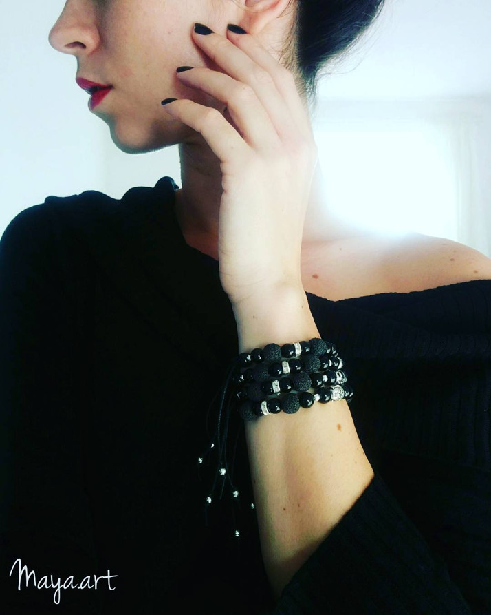 Náramky vyrobené z kávových kamenů doplněné o kovové korálky. Dostupné na