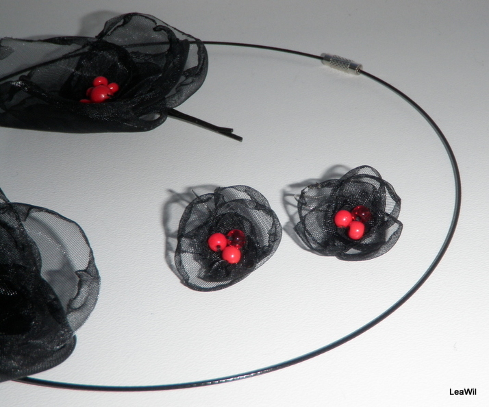 kompletek náhrdelníku, spony a naušnic z organzy