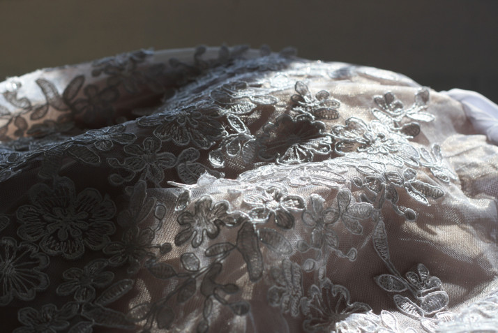 Detail krajkového vrchu šatů, který byl podšitý tělovým tylem...