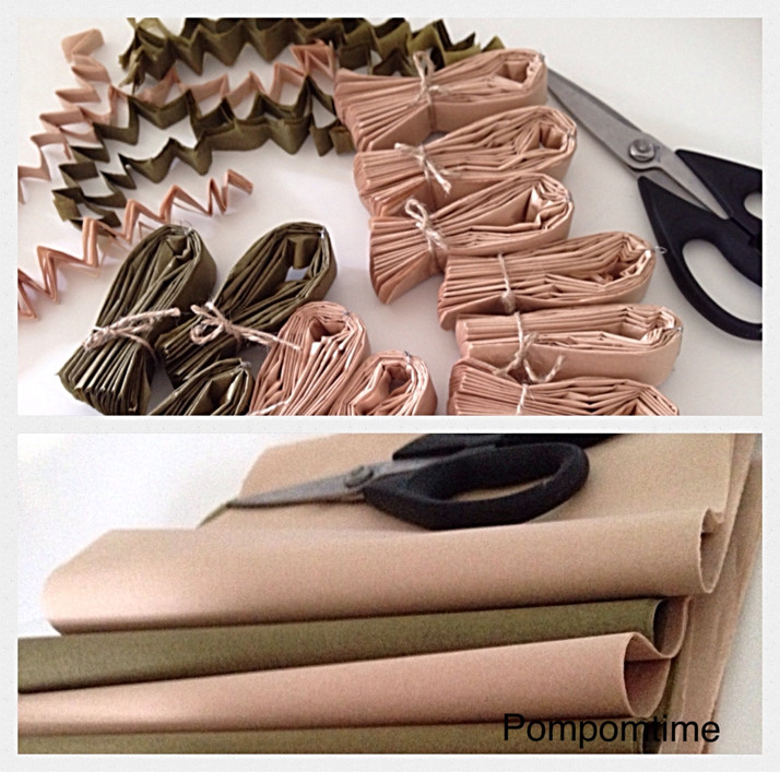 Olivově zelené a usňové pompomky