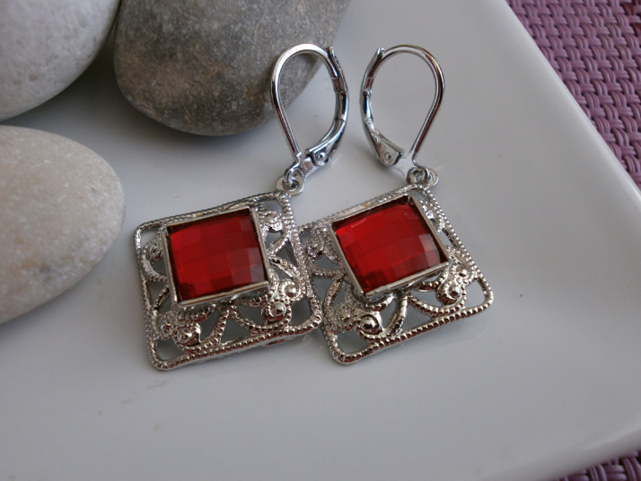 náušnice filigránové-klapky Filip s Swarovski Chessboard Light Siam
