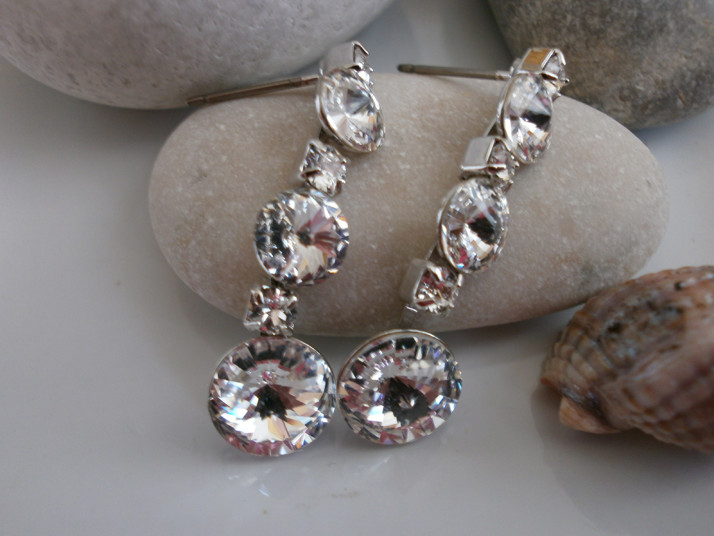 náušnice rhodiované Prokládané- klapky v barvě Crystal