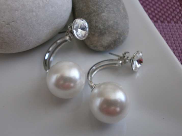 rhodiované záušnice v barvě Crystal s bílou perlou