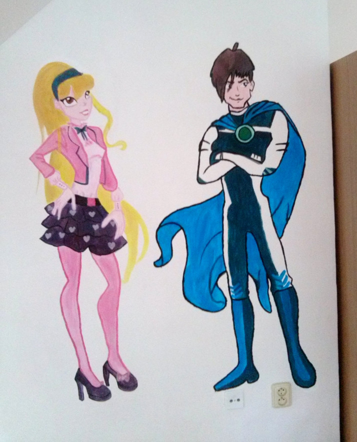 Sofinka si přála do pokojíčku svou oblíbenou Stellu z Winx clubu, cca 1,1m velké postavy, 6hod práce, akvarelové barvy