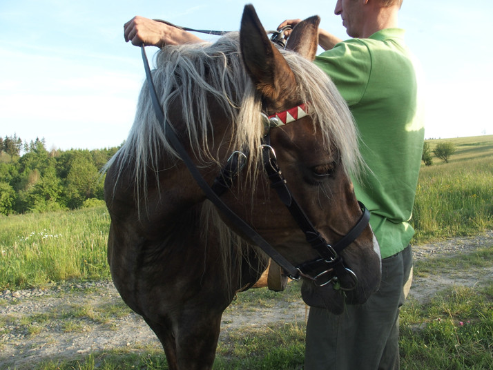 Tradičním sedlářským postupem šitá celokožena pracovní uzda pro koně, vše ruční práce včetně čelenky! Šijeme zakázkově, i jiné potřeby pro chovatelé koní.