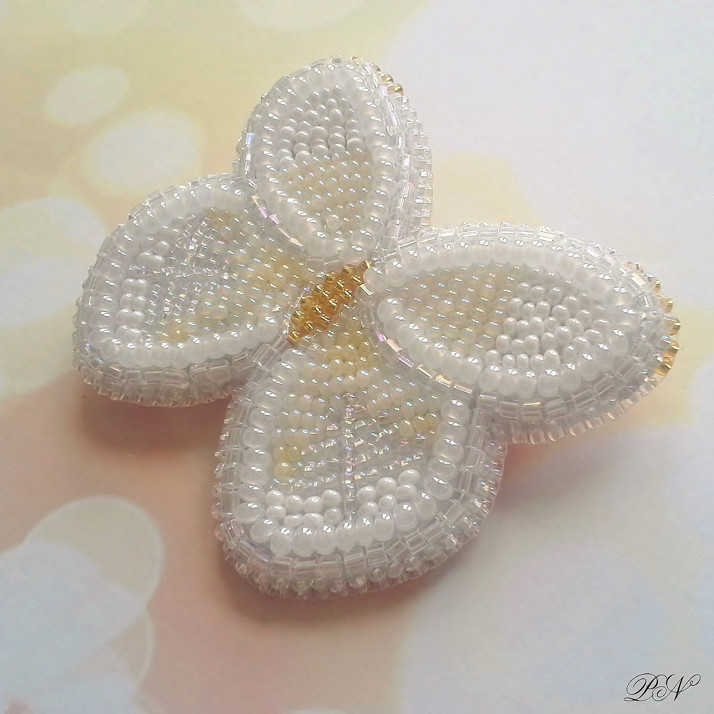 Vyšívaná brož z korálků.