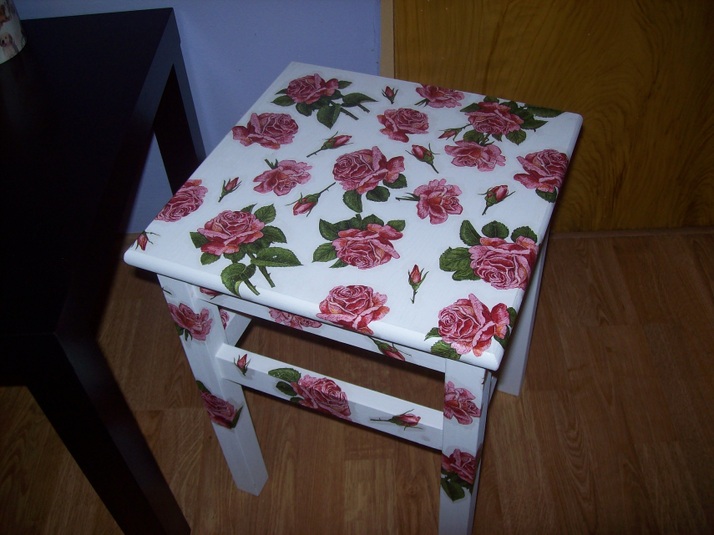 Bíle natřené štokrle, nalepeny růže ubrouskovou technikou, následně natřeno bezbarvým lakem.