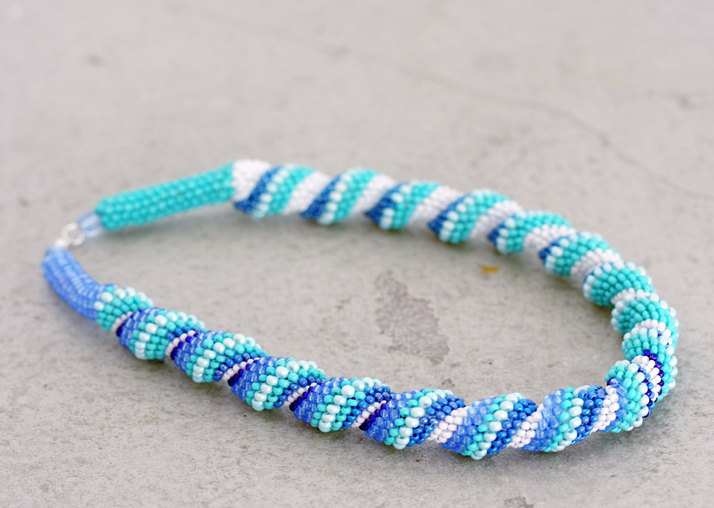 .. příšerně pracné. Nechávám si ji a už se mi to nechce opakovat. Ale ty barevné přechody se mi líbí a na krku vypadá zajímavě.